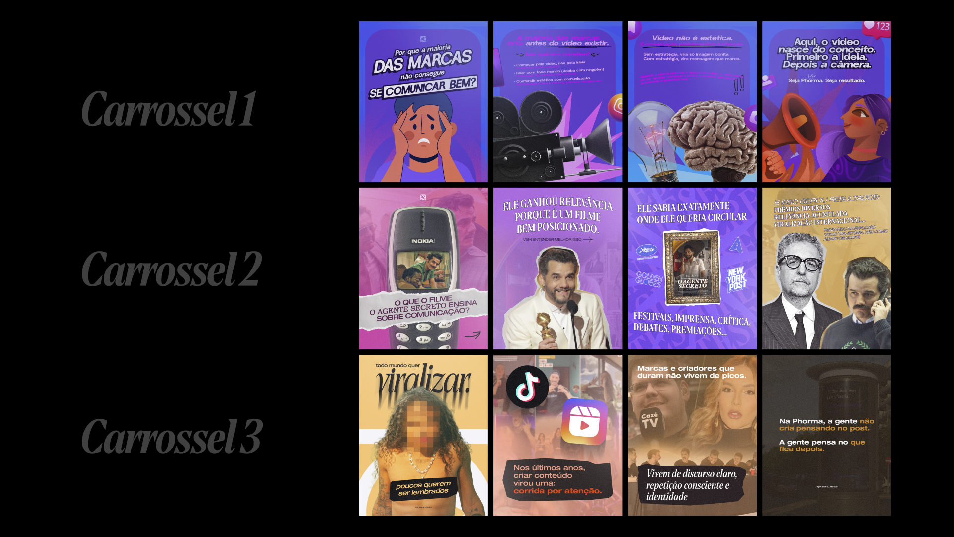 A partir disso, nasce uma linguagem visual que equilibra força e fluidez, razão e sensibilidade. Cada elemento foi pensado para refletir esse contraste de forma harmônica, criando um sistema versátil, consistente e cheio de intenção. O resultado é uma identidade que ultrapassa o visual e se posiciona como extensão do próprio olhar do estúdio. Phorma é onde o audiovisual ganha forma, presença e verdade.